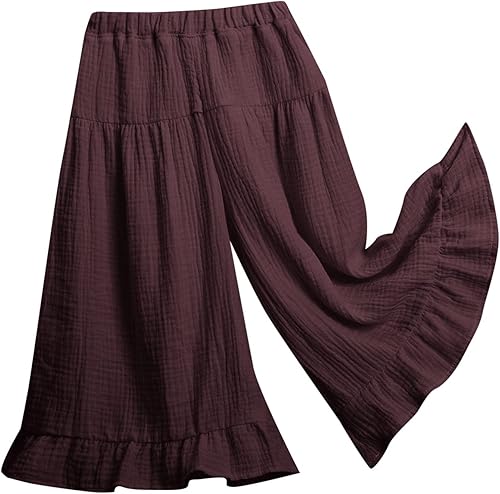 Girls Baby Flowy Soft Pants Toddler Little-Kids Solid Wide Leg High Waisted Palazzo Pant Beach Loose