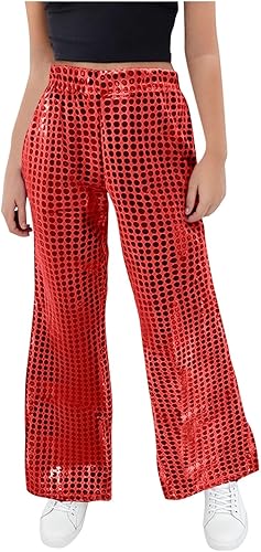 Sequin Wide Leg Pants for Girls Kids Glitter Metallic Dot Flare Pants Tween Girls Cute Shiny Party Club Bell Bottoms
