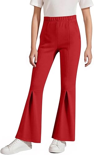 Girls Bell Bottoms Pants High Waisted Stretch Pant Wide Leg Pants School Uniform Trousers Casual Elastic Waist Pants