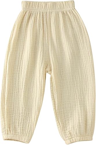 Generic Toddler Kids Girls Pants Solid Color Summer Casual Pants Stretchy High Waist Cotton Thin Pants for (Beige, 18-24 Months)