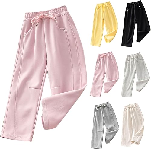 Girls Plain Sweatpants Preppy Elastic High Waist Drawstring Athletic Joggers School Comfort Soft Casual Trousers