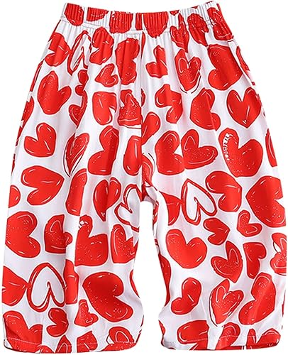 Toddler Girls Pants Stretchy Loose High Waist Haren Pants Summer Heart-Shaped Printed Casual Pants for (Red, 2-3 Years)
