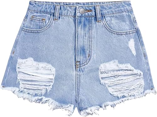 Girls Jean Shorts Ripped Raw Hem High Waist Cute Summer Y2K Distressed Denim Shorts for Teen Girls 8-14Y