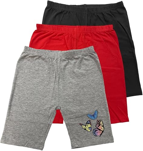 MISS POPULAR 3-Pack Girls Biker Shorts Soft Comfortable Cotton Spandex Elastic Waistband Cute Designs Sizes 4-16