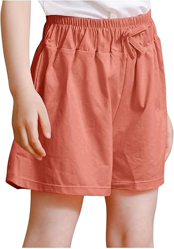 Girls Bermuda Shorts Trendy Summer School Pants High Wasit Straight Leg Loose Fit Trousers with Pockets Hiking