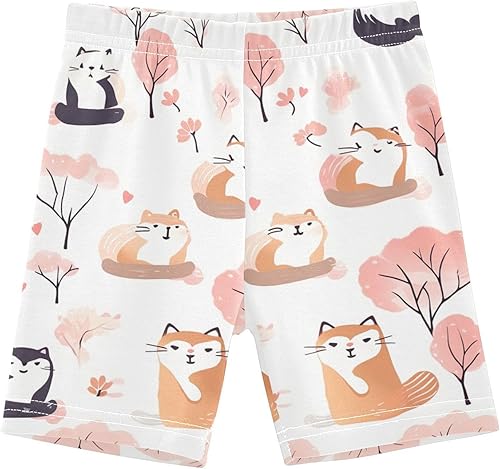 Girls Cotton Biker Shorts Cats Print Cartwheel Dance Gymnastics Undershorts Summer Outfits, 4T