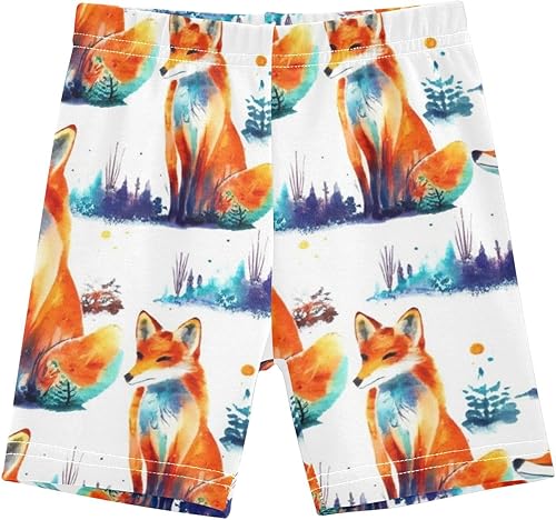 Girls Bike Shorts Under Dress Ballet Dance Cartwheel Shorts Cotton Fox Print Orange, 4T