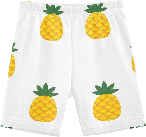 Girls Cotton Bike Shorts Summer Outfits Yellow Pineapples White Breathable Toddler Clothes, 4T