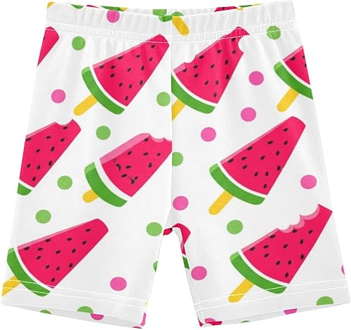 Girls Cotton Bike Shorts Watermelon Print Lined Athletic Summer Cartwheel for Kids Outfits, 4T