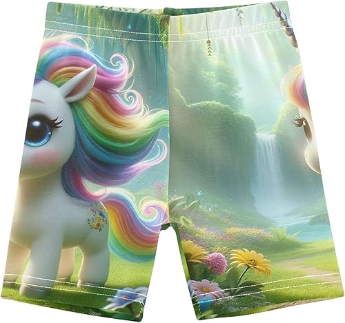 Girls Cotton Bike Shorts Unicorn Mountain Hole Print Toddler Athletic Cartwheel Dance Shorts, 4T