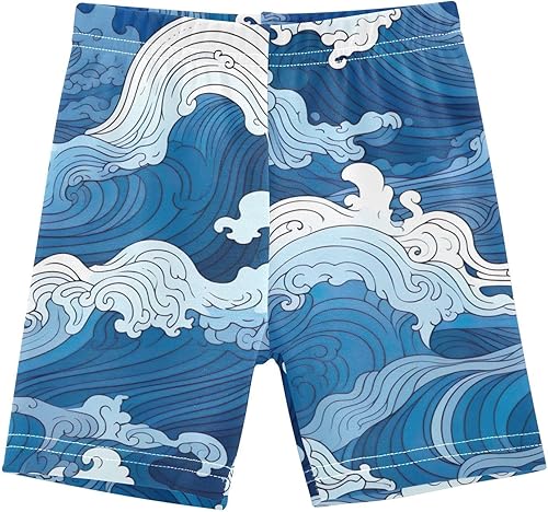 Girls Cotton Bike Shorts Blue White Swirls Toddler Athletic Summer Cartwheel Dance Short, 4T