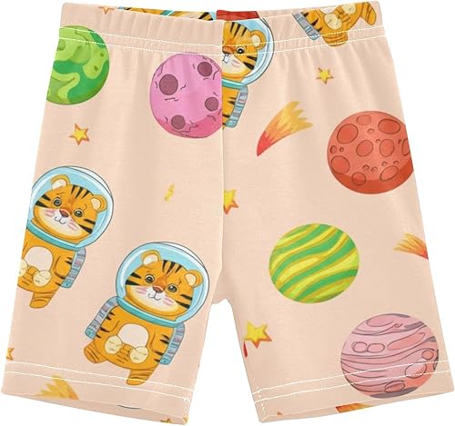 Girls Cotton Bike Shorts Astronaut Tiger Print Toddler Summer Clothes for Under Dresses, 4T
