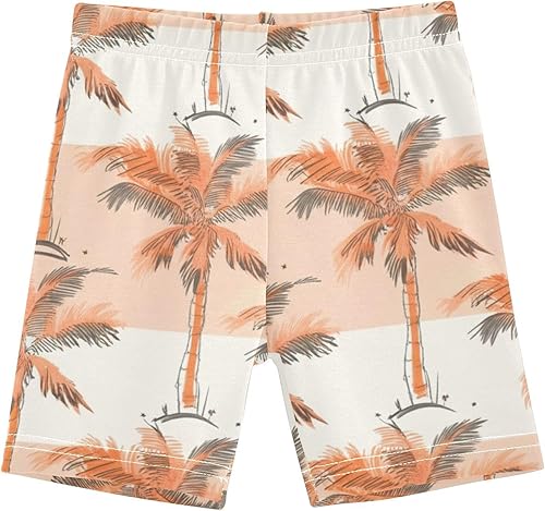 Girls Bike Cartwheel Shorts Palm Trees Warm Color Toddler Summer Dance Biker Cotton Spandex, 4T