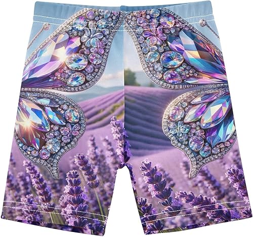 Girls Butterfly Flying Lavender Field Cotton Bike Shorts Toddler Summer Clothes, 4T
