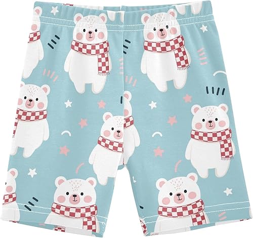 Bear Scarf Blue Girls Bike Shorts Toddler Soft Cotton Cartwheel Under Dress Dance Shorts