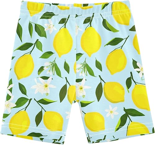 Lemon Flower Blue Girls Bike Shorts Toddler Soft Cotton Active Under Dress Shorts