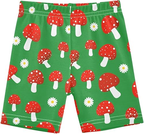 Green Mushroom Girls Bike Shorts Toddler Soft Cotton Under Dress Dance Shorts