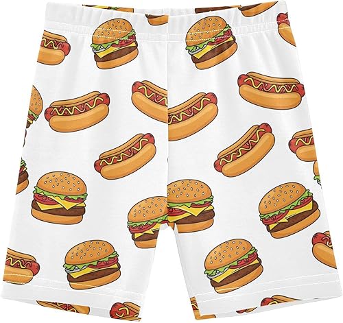 Hamburger White Girls Bike Shorts Toddler Soft Cotton Under Dress Dance Shorts