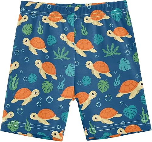 Turtle Starfish Blue Girls Bike Shorts Toddler Soft Cotton Active Biker Shorts