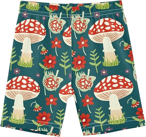 Red Mushroom Flower Girls Bike Shorts Toddler Soft Cotton Cartwheel Under Dress Dance Shorts