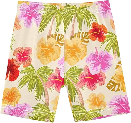 Palm Tree Flower Beige Girls Bike Shorts Toddler Soft Cotton Active Under Dress Shorts