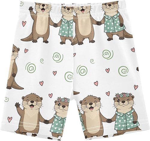 Otters Hearts White Girls Bike Shorts Toddler Soft Cotton Active Biker Shorts