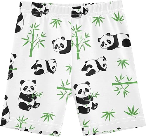 Panda White Leaves Girls Bike Shorts Toddler Soft Cotton Under Dress Cartwheel Shorts