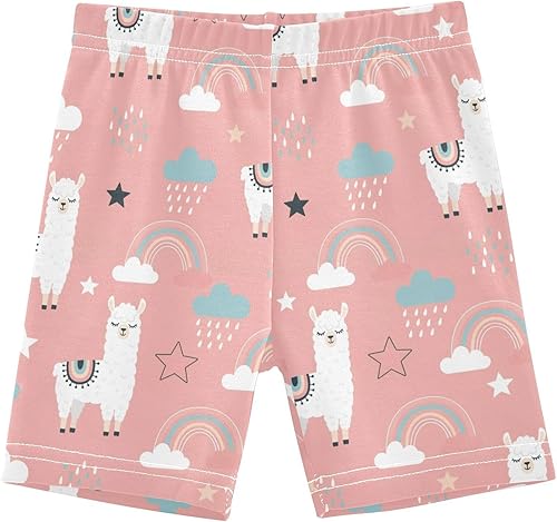 Llama Rainbow Star Pink Girls Bike Shorts Toddler Soft Cotton Active Biker Shorts