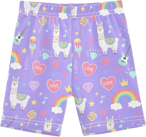 Llama Rainbow Purple Girls Bike Shorts Toddler Soft Cotton Cartwheel Under Dress Dance Shorts