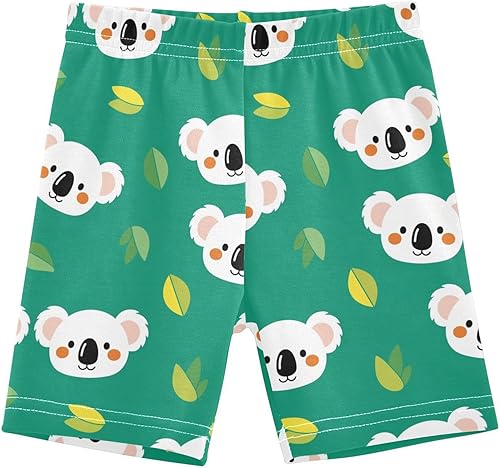 Koala Green Leaf Girls Bike Shorts Toddler Soft Cotton Active Biker Shorts
