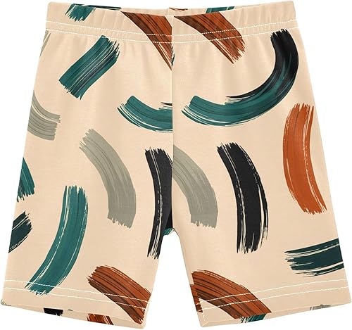 Abstract Curve Beige Girls Bike Shorts Toddler Soft Cotton Cartwheel Under Dress Dance Shorts
