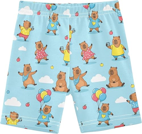 Capybara Clouds Blue Girls Bike Shorts Toddler Soft Cotton Active Biker Shorts