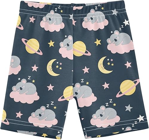Koala Plant Star Blue Girls Bike Shorts Toddler Soft Cotton Cartwheel Under Dress Dance Shorts