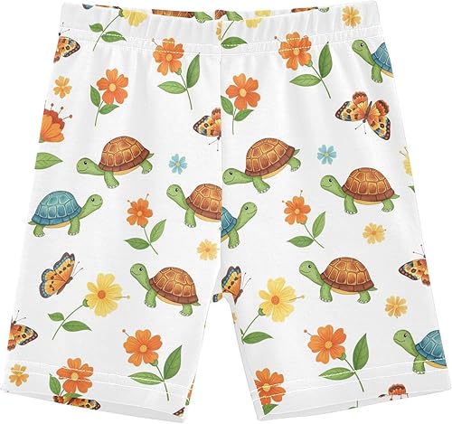 Turtle Brown Flowers Girls Bike Shorts Toddler Soft Cotton Under Dress Dance Shorts