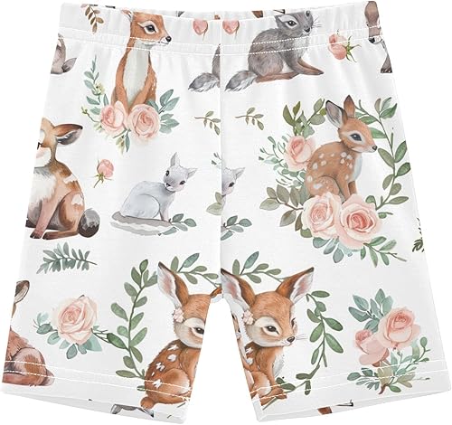 Girls Bike Shorts Breathable Cartwheel Shorts Kids Under Dress Biker Short Watercolor Animals Roses White