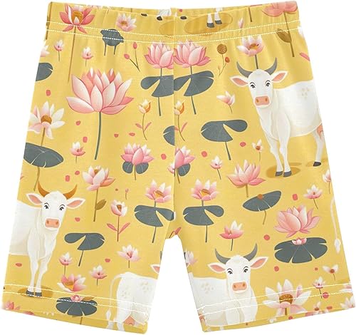 CHIFIGNO Girl's Cartwheel Shorts Bike Shorts Kids Cotton Dance Short for Under Dress Cute Cows Flowers Yellow