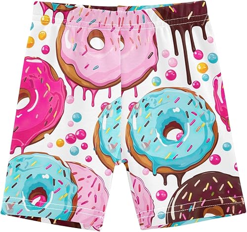 CHIFIGNO Girl's Cartwheel Shorts Bike Shorts Kids Cotton Dance Short for Under Dress Colorful Donut White