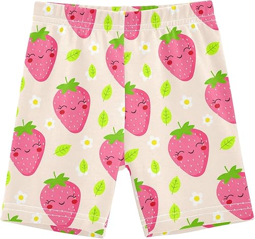 Strawberry Leaves Beige Girls Bike Shorts Toddler Under Dress Dance Shorts Girl Clothes for Girls,4T