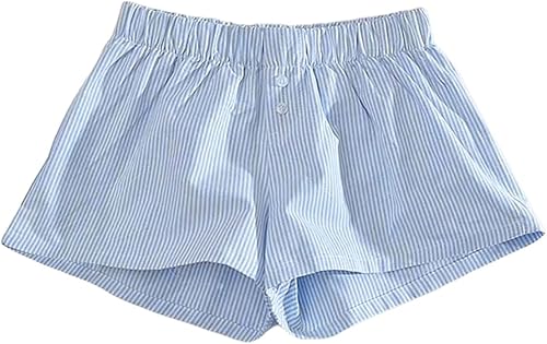 SHENHE Girl's Summer Striped Elastic High Waisted Vacation Casual Y2k Boxer Shorts
