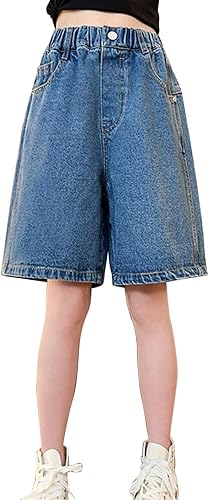 Girls Knee Length Y2k Baggy Cargo Jorts 2025 Trendy High Waisted Denim Shorts for Teens Kids Gymnastics Athletic