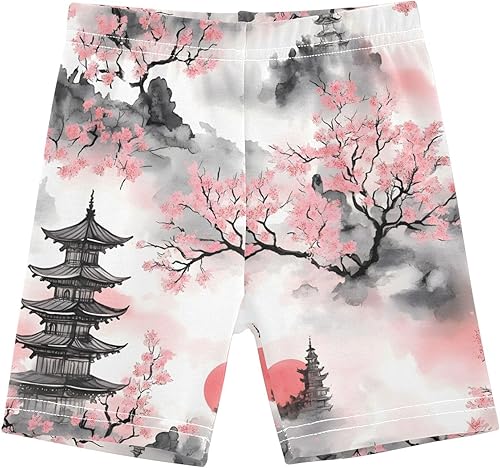 Watercolor Cherry Blossom Cartwheel Shorts Girls' Bike Shorts Under Dress Dance Short Kids Clothes