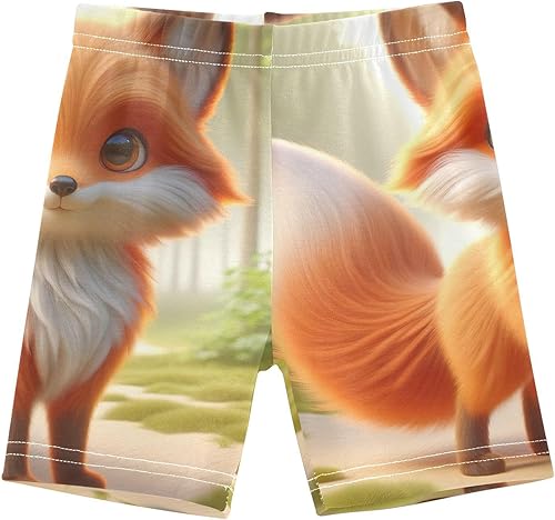 Girls Cotton Bike Shorts with Cute Baby Fox Print for Summer, Cartwheel Dance Athletic Lined Shorts, 4T