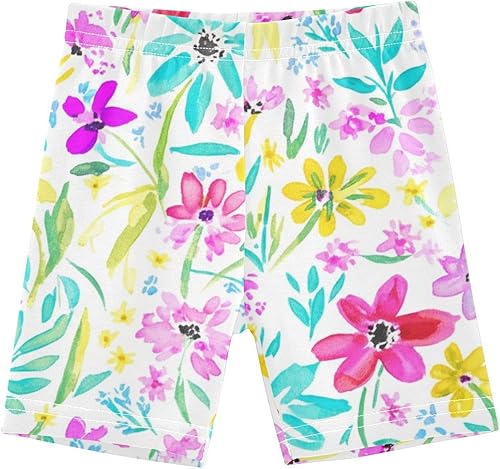 Colorful Floral Girls Cotton Bike Shorts for Summer Kids Outfits Toddler Lined Cartwheel Shorts, 4T