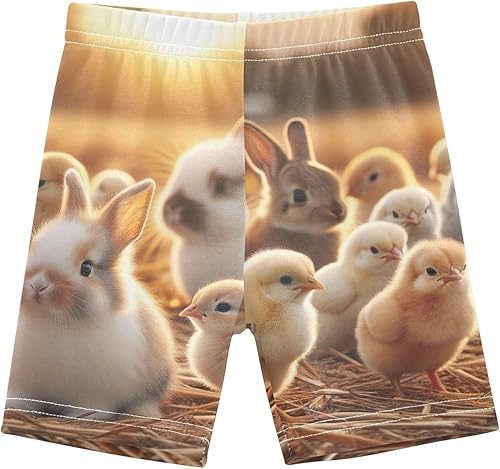 Girls’ Cotton Bike Shorts Chicks and Bunnies Print Toddler Cartwheel Dance Shorts, Summer Clothes, 4T