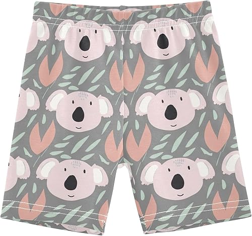 Girls Biker Shorts Cotton Spandex Cute Koala Leafy Grey Cartwheel Underdress Summer Outfits, 4T