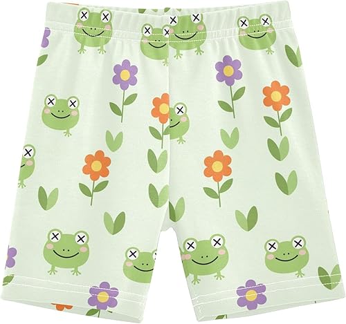 Flower Green Frog Girls Bike Shorts Toddler Soft Cotton Under Dress Cartwheel Shorts