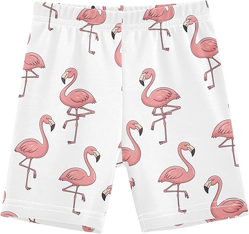 Flamingo White Pink Girls Bike Shorts Toddler Soft Cotton Under Dress Dance Shorts