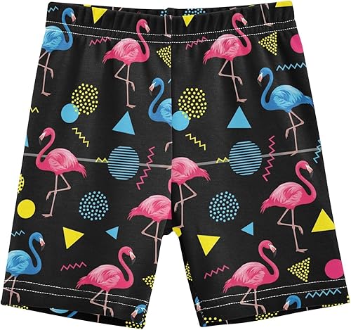 Flamingo Black Girls Bike Shorts Toddler Soft Cotton Active Biker Shorts