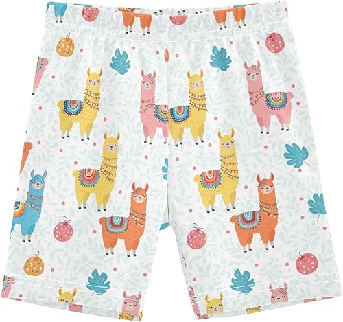 Pink Llama Leaves Girls Bike Shorts Toddler Soft Cotton Active Under Dress Shorts