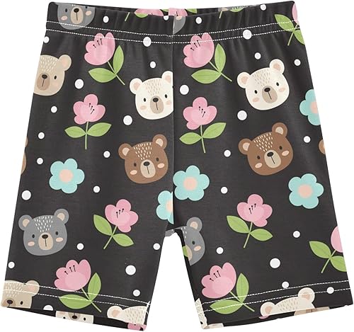 Bear Flower Black Girls Bike Shorts Toddler Soft Cotton Cartwheel Under Dress Dance Shorts